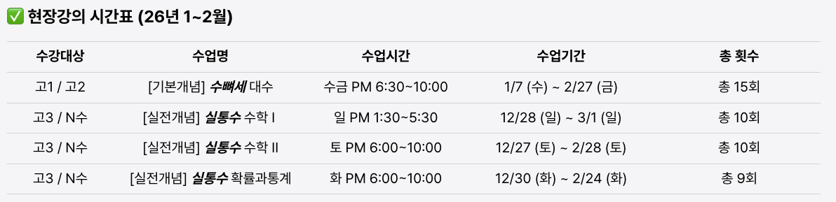 수강생 대상 | 상담 일시 개별 공지 | 매주 신청